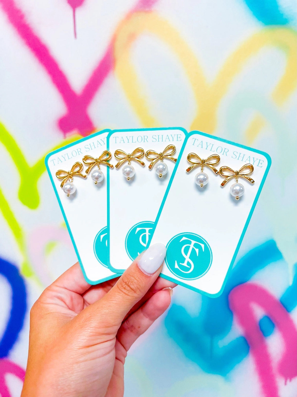 Explore the unique and stylish world of Taylor Shaye Designs. Our Kaylie Bow Drops are not just earrings; they are a perfect creation for each outfit. These dangle earrings are designed with a keen eye for detail, ensuring they complement your style. Enjoy the best of fashion with Taylor Shaye Designs.